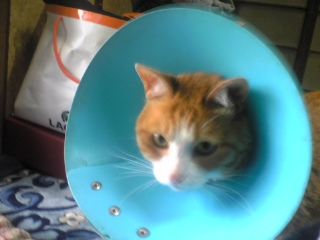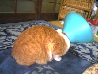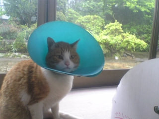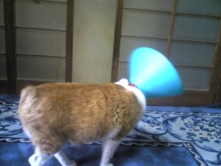 それでも足とかをかじっちゃう癖があるんでこのエリザベスカラーをつけてます!!