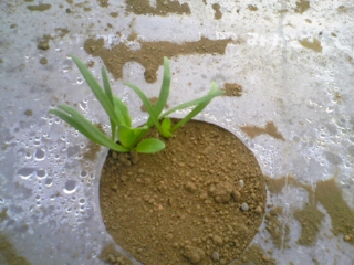 前回、まいたホウレンソウが芽をだしたんで!!