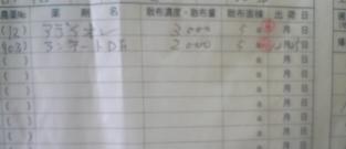 農薬登録番号、農薬名、散布量、散布面積、散布日を記入します!
