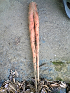 収穫してきた長人参を選別、洗い、袋詰めをしていきます!!