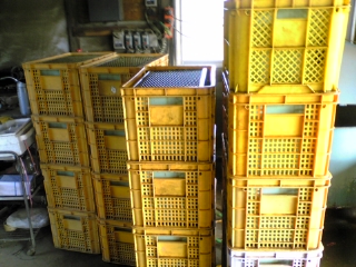 洗い終えたものを野菜脱水機(11/6の記事参照)にかけます。