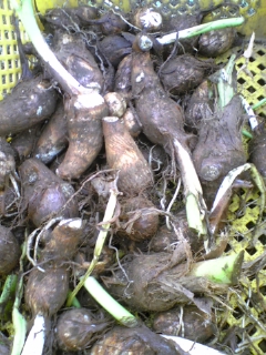 サトイモは保存がきくから、暗い土の中に埋めとけば