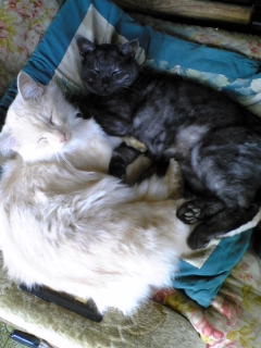 仲良く仕事場で寝ています
