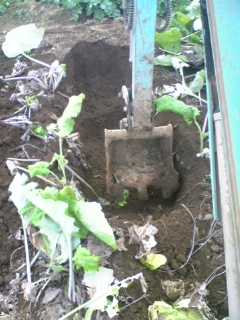 ゴボウとゴボウとの間を掘るんで傷つけないように掘るのが大変
