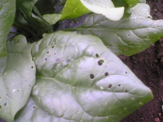 昨日、雨が降る前に収穫してホウレンソウが虫にやられてます!!
